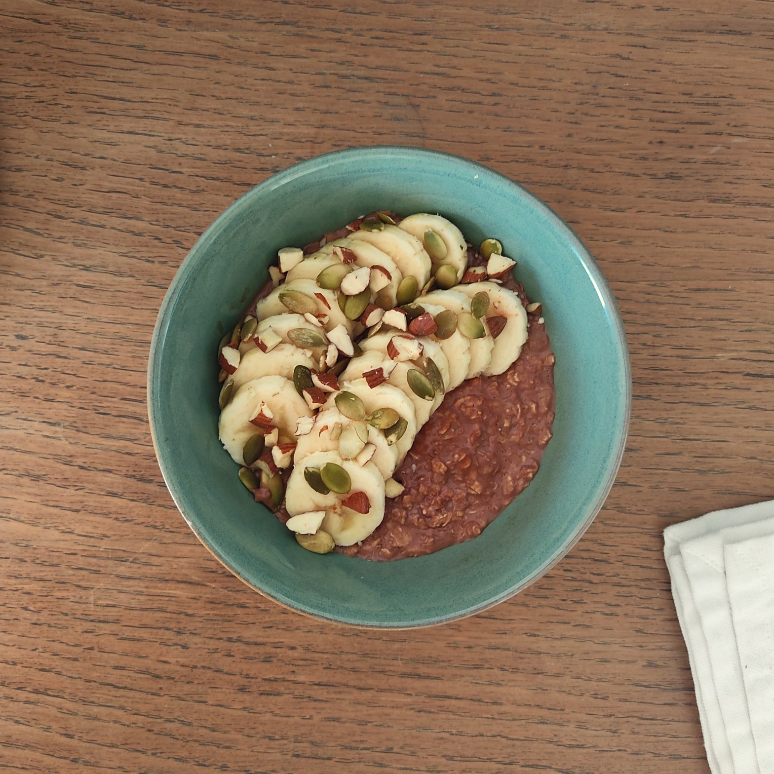 Mélangez le porridge et ajoutez les toppings.
