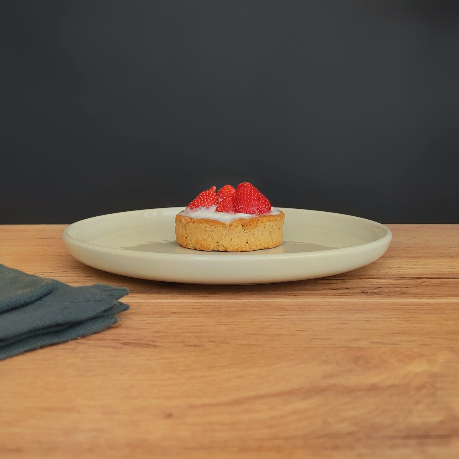 Laissez-la pâte refroidir, puis garnissez-la de fromage blanc et de fraises coupées en morceaux.