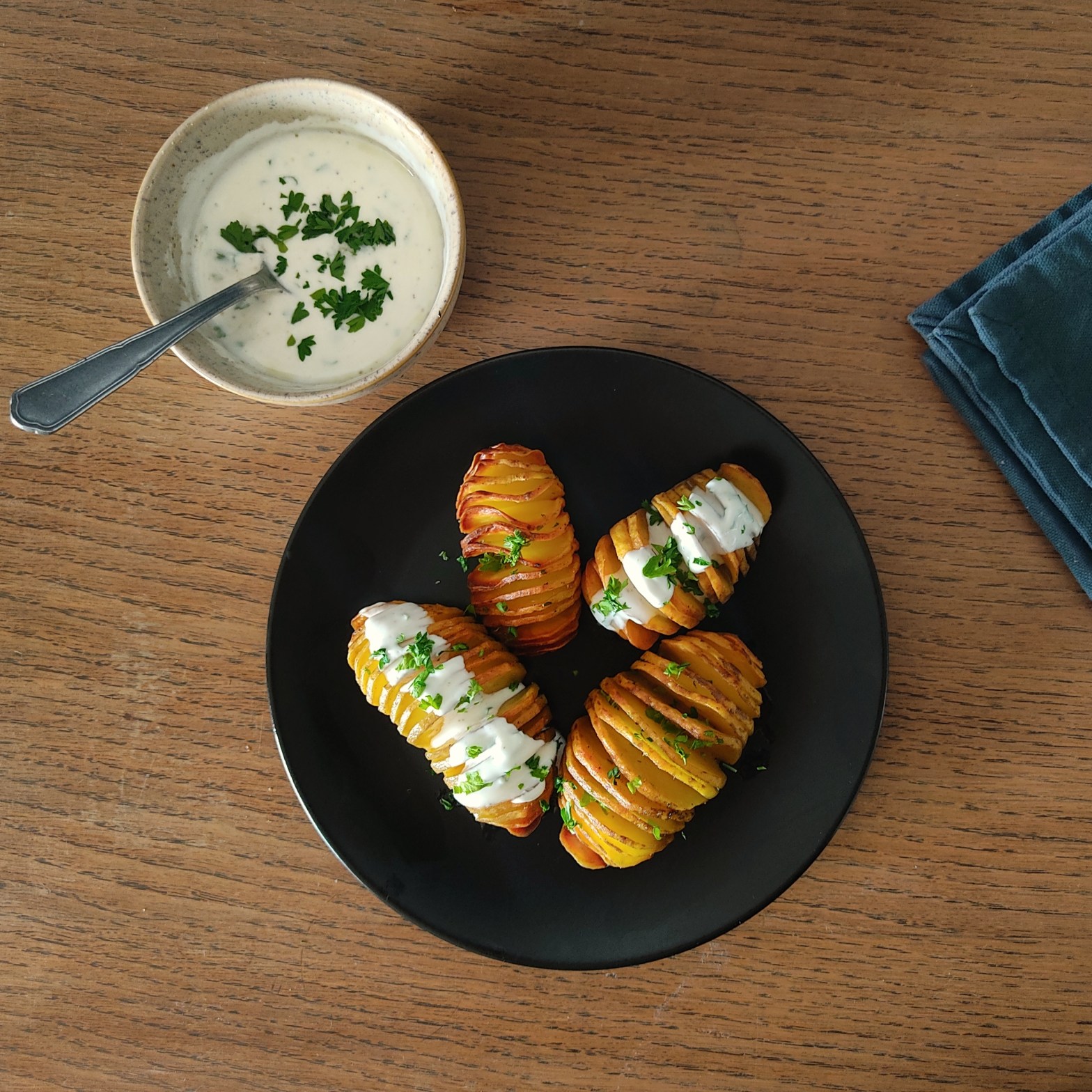 Vous pouvez accompagner ces pommes de terre d’une délicieuse sauce au yaourt et aux aromates !