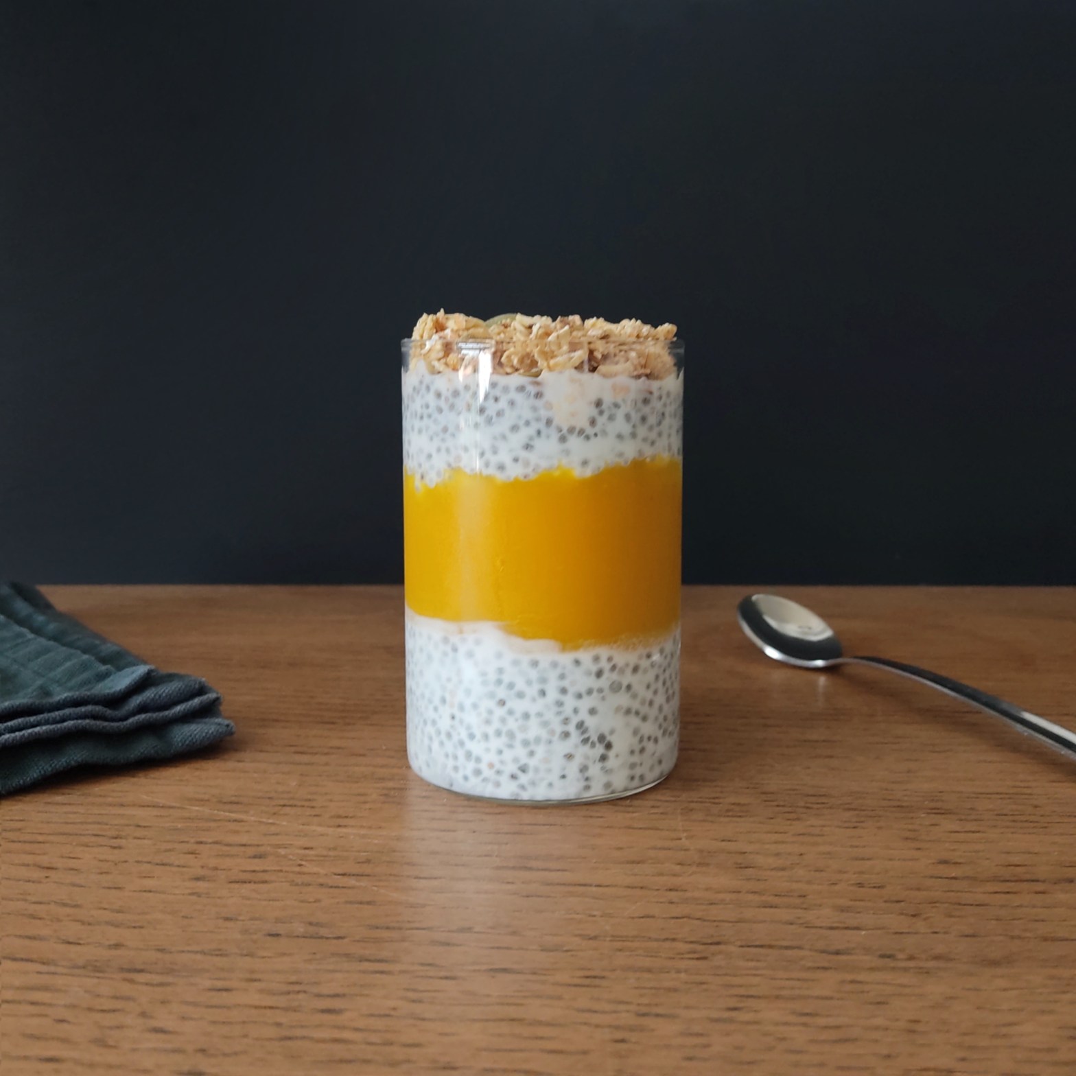 Mélangez le lait et les graines de chia pendant 2 minutes pour éviter qu’elles ne se collent entre elles.