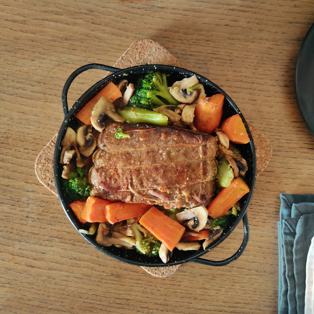 Rôti de boeuf sur lit de légumes